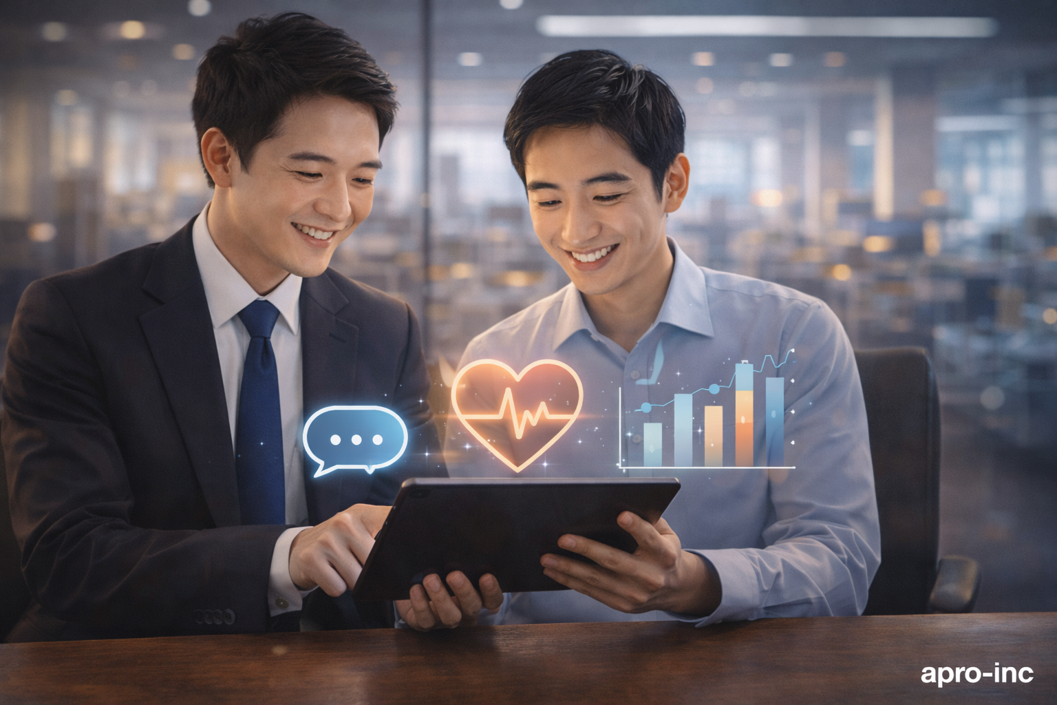 apro-incでは、貴社の組織課題に合わせたツールの選定から、現場への定着支援まで、DXを通じた業務改善を一気通貫でサポートいたします。 「新人の離職を防ぎたい」「社内コミュニケーションを円滑にしたい」とお悩みの経営者・人事担当者様は、ぜひお気軽にご相談ください。