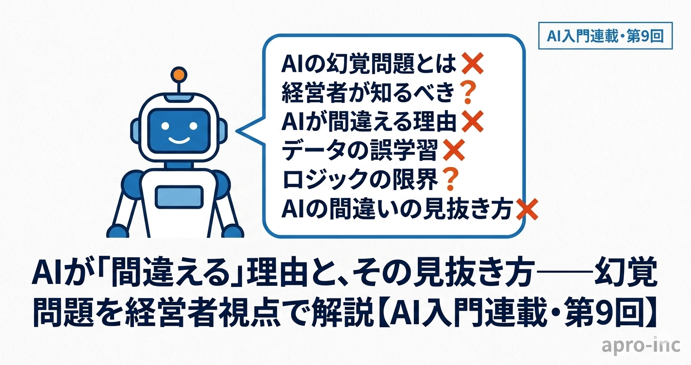 AIが事実に反する情報を、まるで事実であるかのように自信満々で出力する。この現象を「ハルシネーション(幻覚)」と呼びます。連載も第9回、今回はAIを安全に使うために経営者が必ず知っておくべき「AIの弱点」を正面から解説します。
